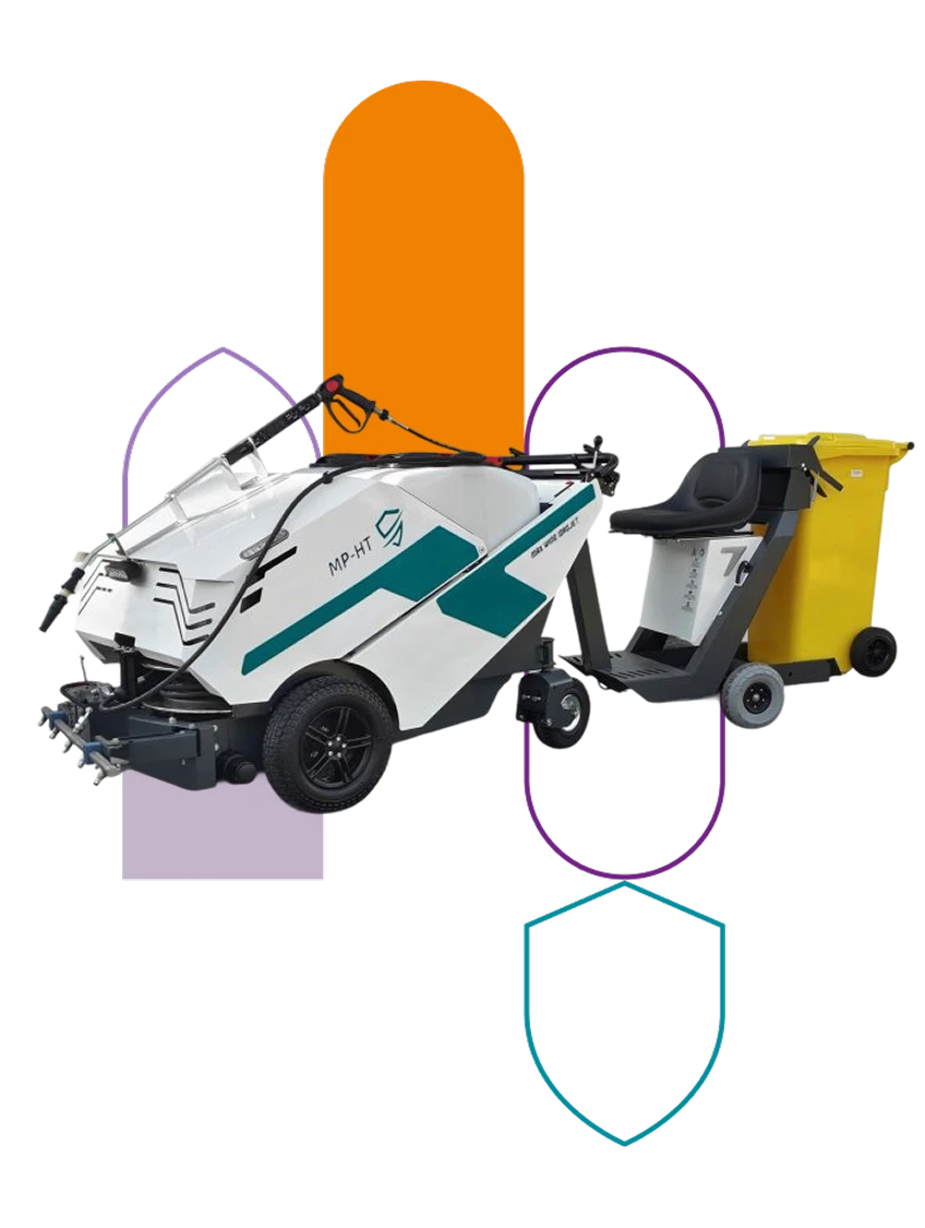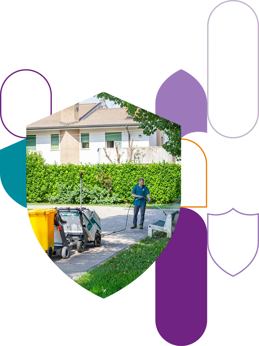 Grazie alla possibilità di utilizzare disinfettante, la macchina può essere impiegata anche per interventi di sanificazione delle superfici pubbliche.