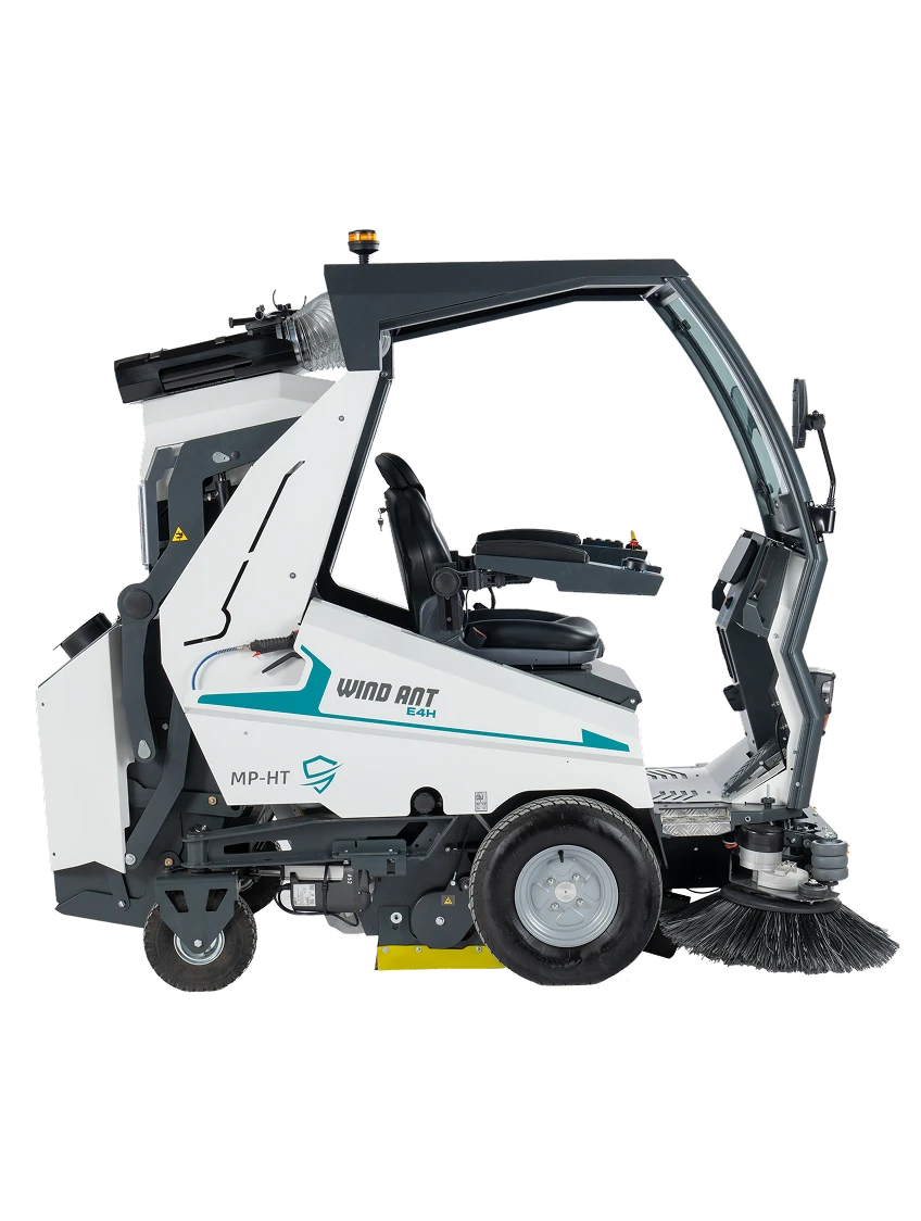Wind Ant E4H è la nostra spazzatrice uomo a bordo completamente elettrica, progettata per rendere le operazioni di pulizia quotidiana più semplici, efficienti e sostenibili. Nonostante le dimensioni compatte, la macchina è in grado di raccogliere grandi quantità di sporco grazie a un sistema di raccolta evoluto che combina aspirazione potente e convogliamento a nastro.